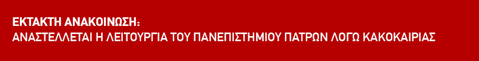 Εκτακτη ανακοίνωση - ΑΝΑΣΤΟΛΗ ΛΕΙΤΟΥΡΓΙΑΣ ΠΑΝΕΠΙΣΤΗΜΙΟΥ ΛΟΓΩ ΚΑΚΟΚΑΙΡΙΑΣ