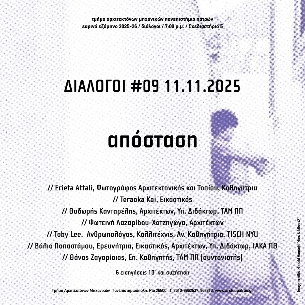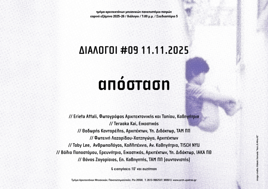 Στην αρχιτεκτονική, ως πεδίο συνάντησης πεδίων, η έννοια της απόστασης αναπροσδιορίζεται συνεχώς, σε πολλαπλά πλαίσια αναφοράς, από τη σύλληψη της ιδέας έως την πραγματοποίησή της: εννοιολογικά ως διαφορά, μετρικά ως μέτρο, διάσταση ή μετατόπιση, αντιληπτικά ως θέση ή τρόπος θέασης, σχεσιακά ως όριο ή συνάντηση, και οντολογικά ως διάκριση ή δεσμός.